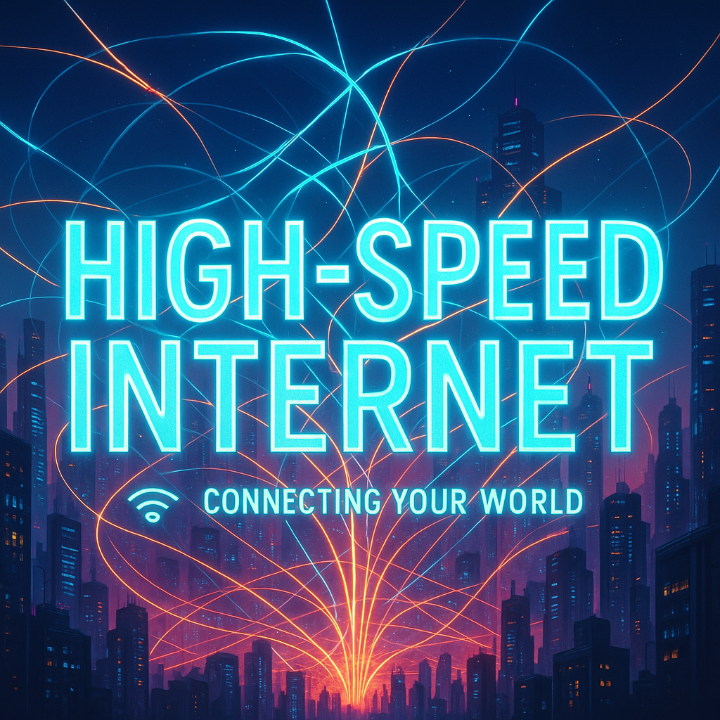 /Collection: /by davooda/Type: PNG/A visually striking digital artwork promoting high-speed internet, featuring vibrant neon colors and a futuristic cityscape. Ideal for marketing tech services or internet providers.