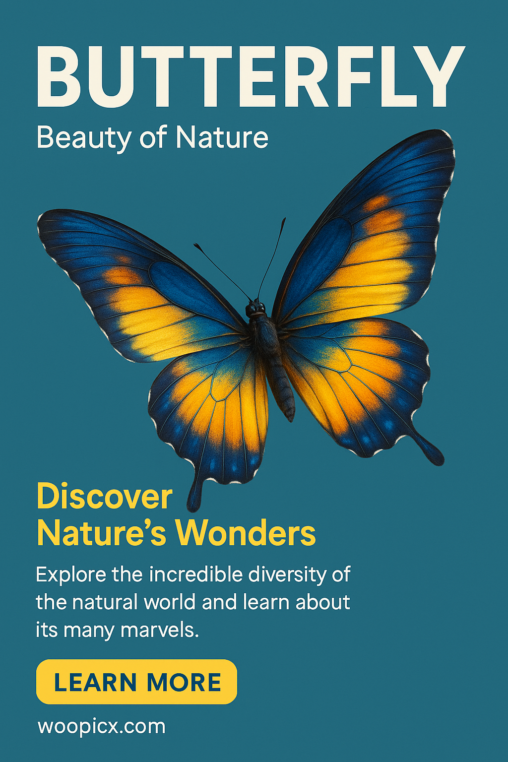 Vibrant promotional graphic featuring a butterfly, highlighting the beauty and diversity of nature. Ideal for educational or environmental campaigns.