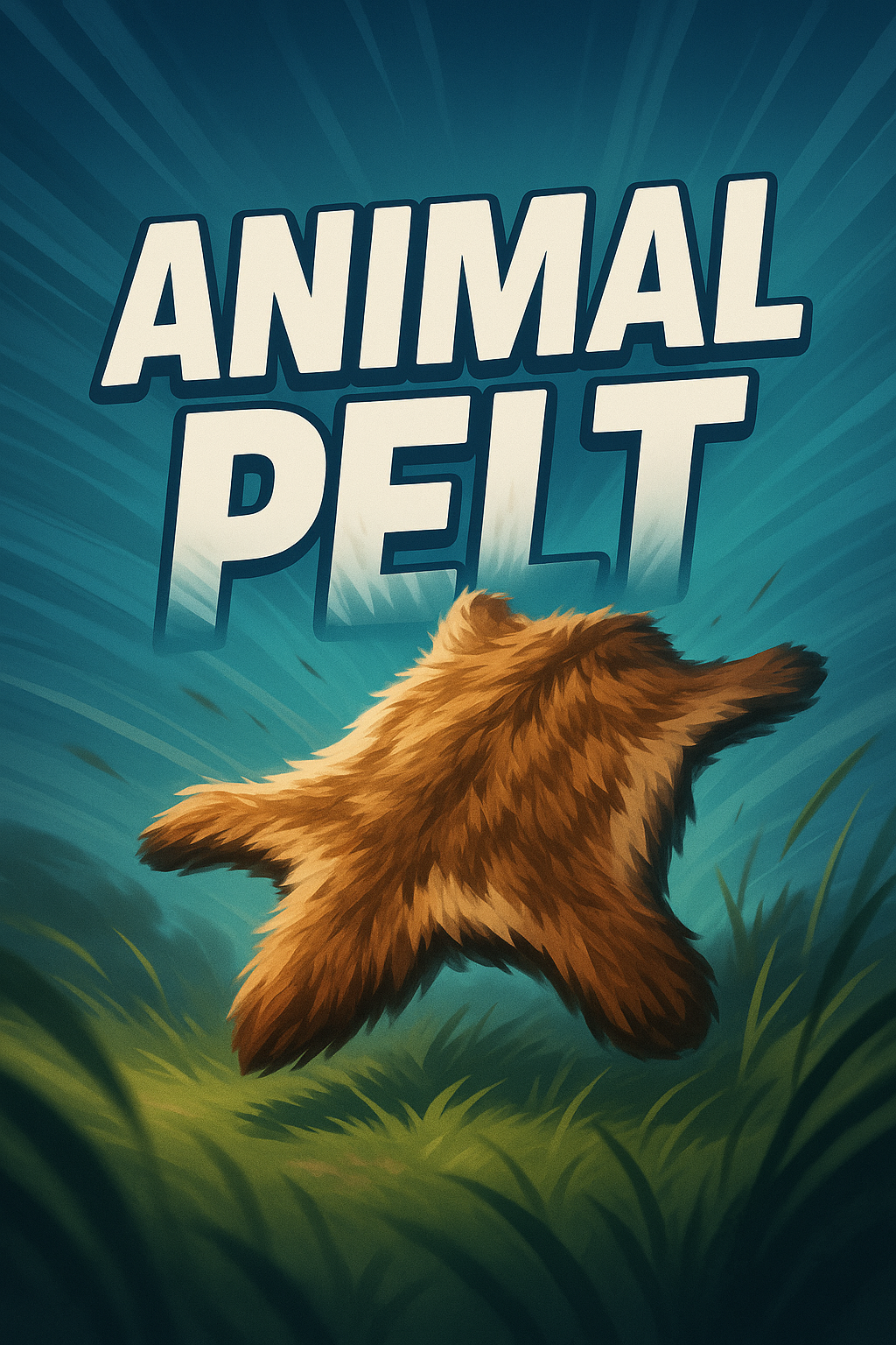 A vibrant illustration featuring an animal pelt with dynamic rays emanating from the center. The title 'ANIMAL PELT' is prominently displayed with engaging typography, set against a smooth gradient background.