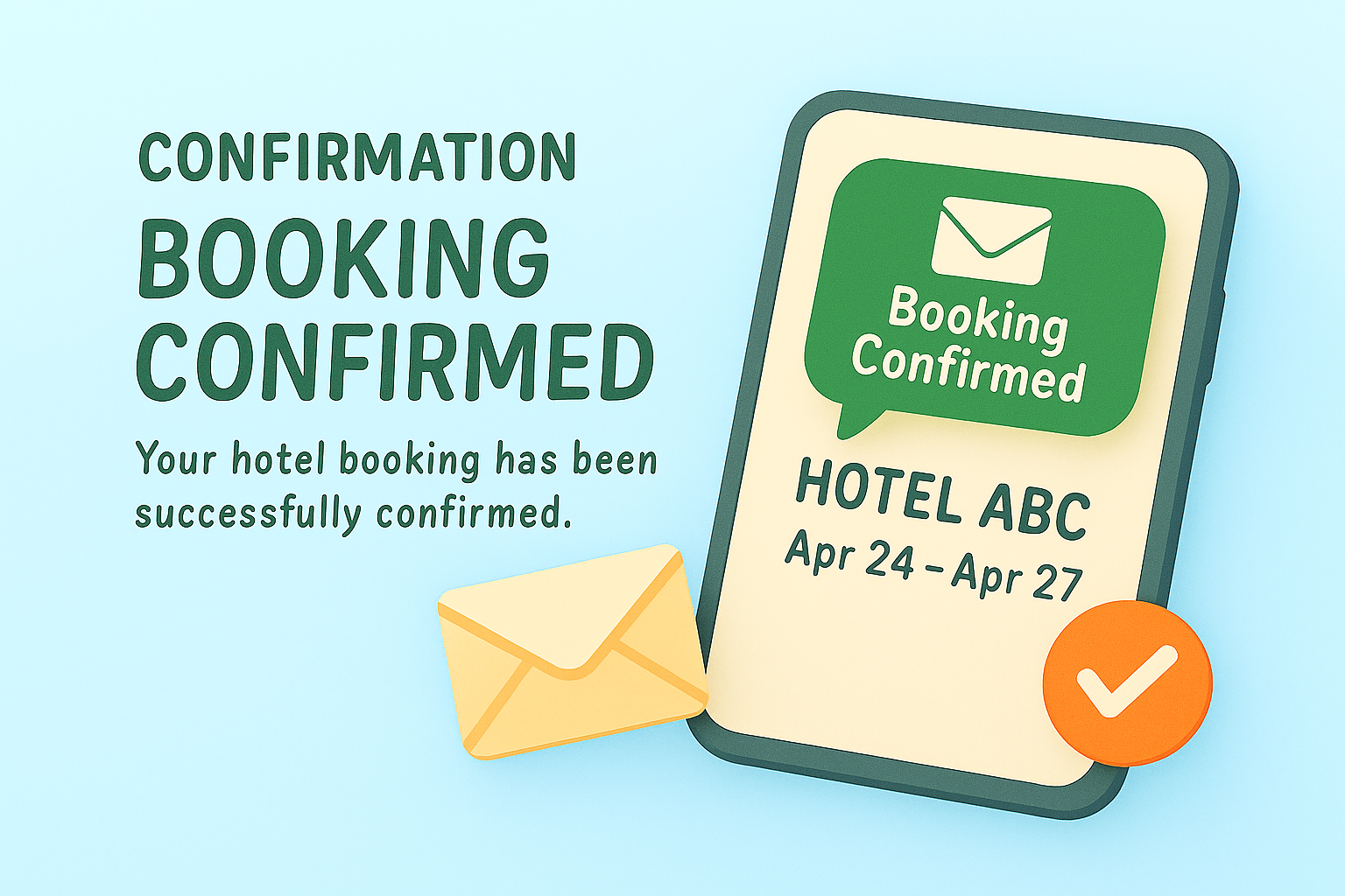 Hotel Booking Confirmation Graphic with Mobile Phone Illustration