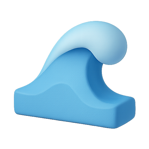 A minimalist 3D representation of a wave, featuring smooth curves and a vibrant blue color. Ideal for use in branding, art projects, or as a decorative element.
