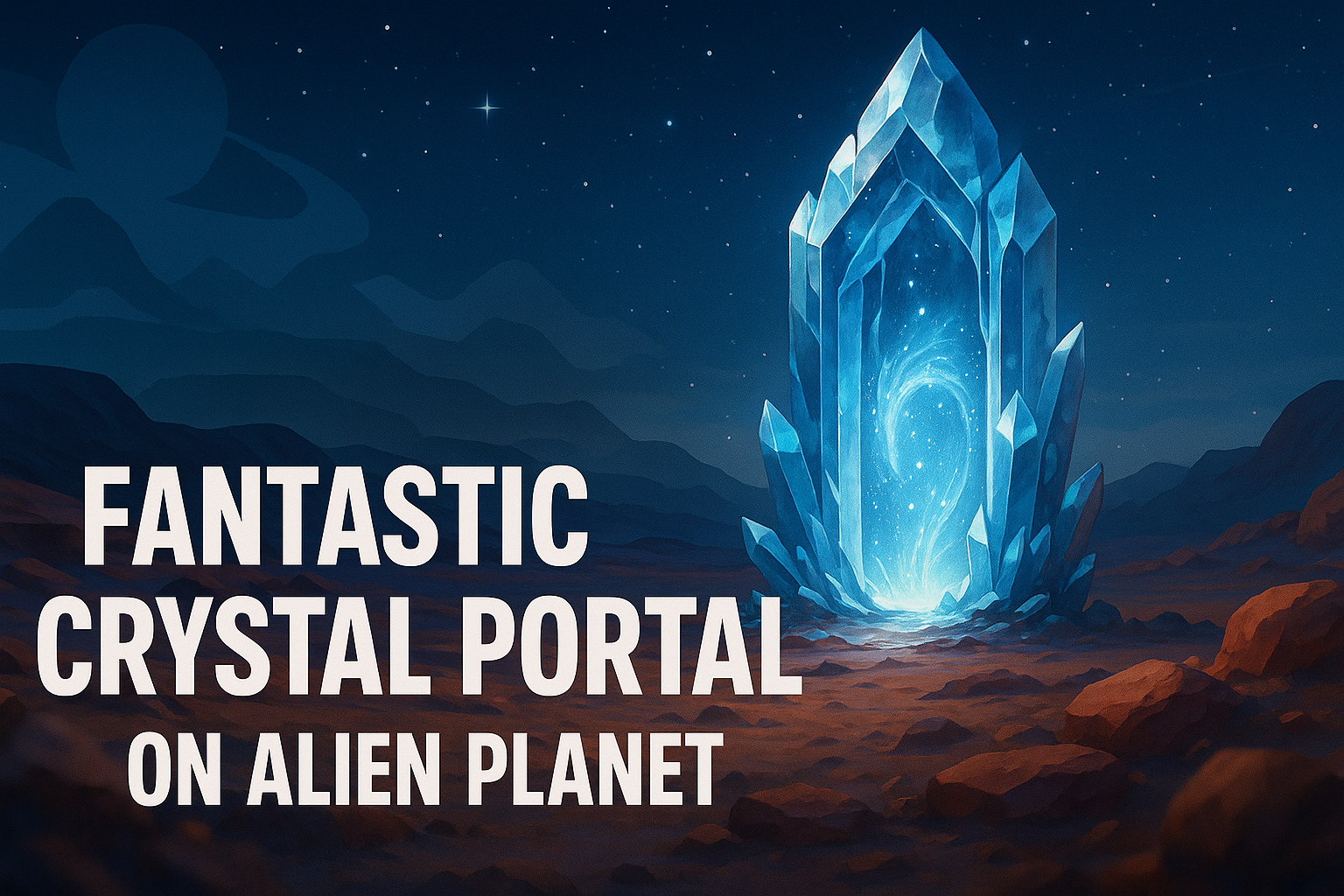 Fantasy Landscape Featuring a Crystal Portal on an Alien Planet