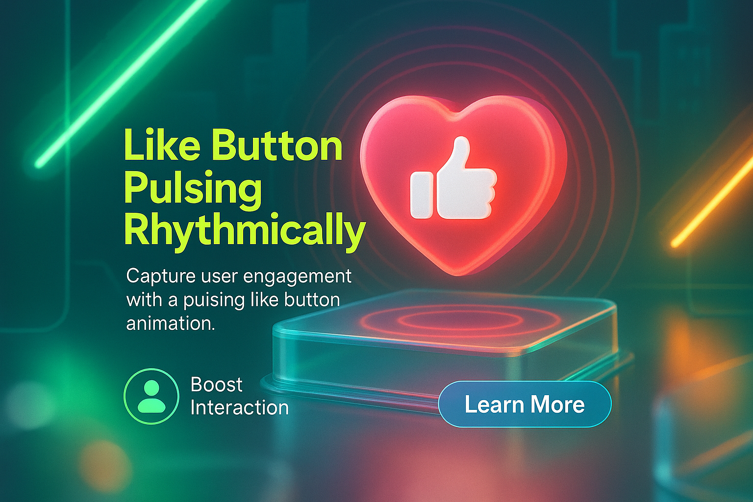 /Collection: /by davooda/Type: PNG/Vibrant digital illustration showcasing a pulsing like button design, ideal for enhancing user engagement in interactive applications. The modern style incorporates neon colors and smooth animation effects.