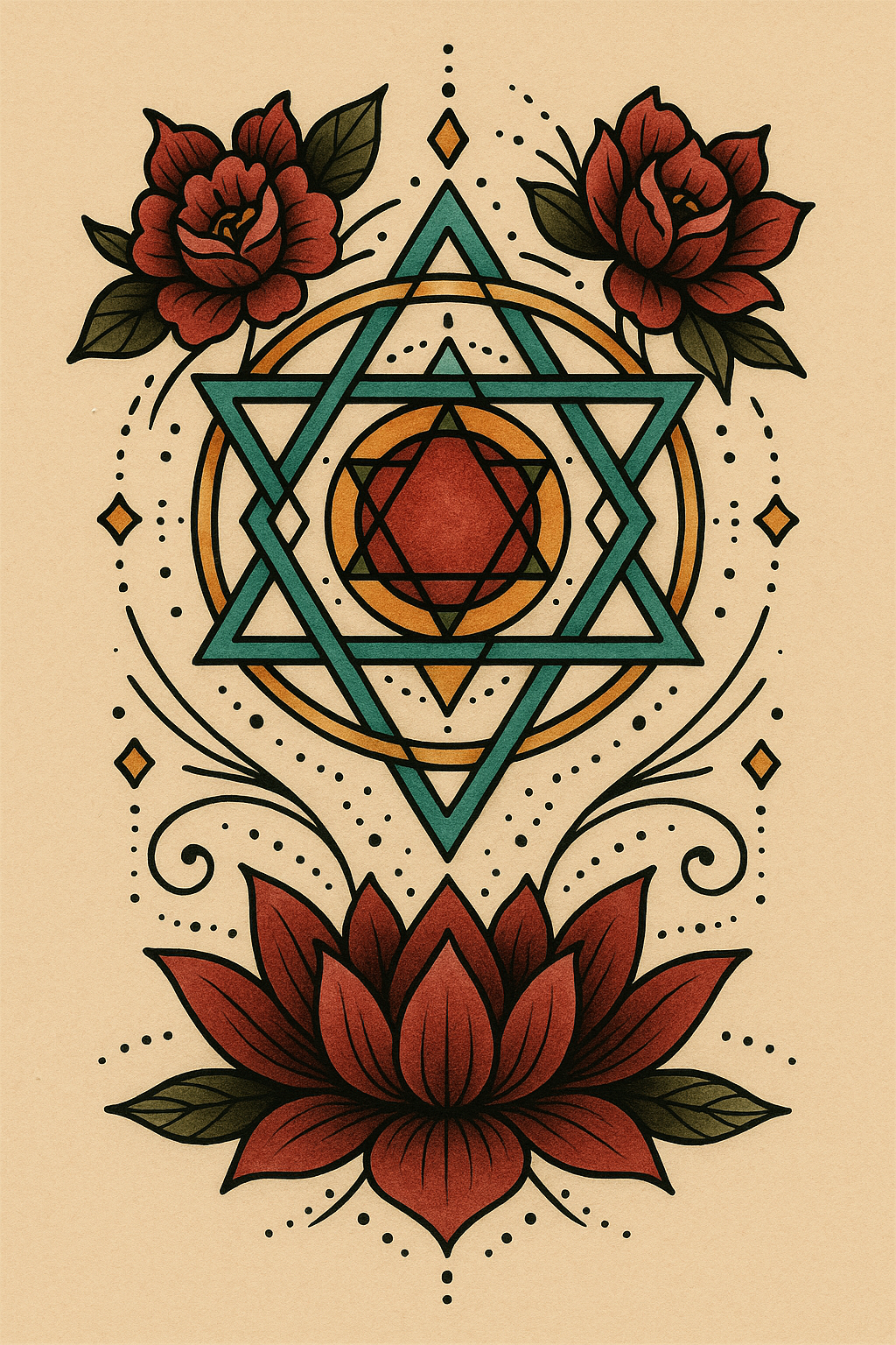 Stylized Tattoo Design Featuring a Diamond and Roses