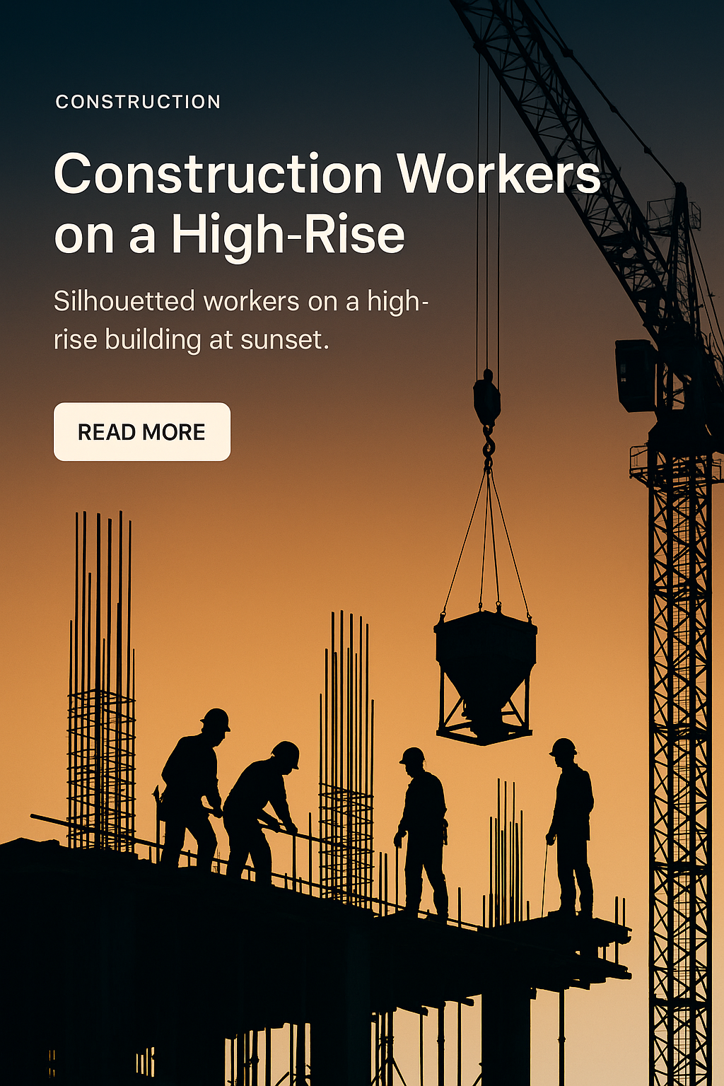 /Collection: /by davooda/Type: PNG/Silhouetted construction workers are seen atop a high-rise building at sunset, with cranes and scaffolding framing the scene. The gradient background enhances the dramatic effect.