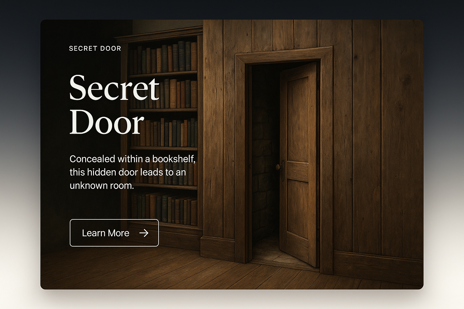 /Collection: /by davooda/Type: PNG/A stylish illustration of a secret door hidden within a bookshelf. The scene features warm wooden textures, inviting viewers to explore the unknown room beyond.