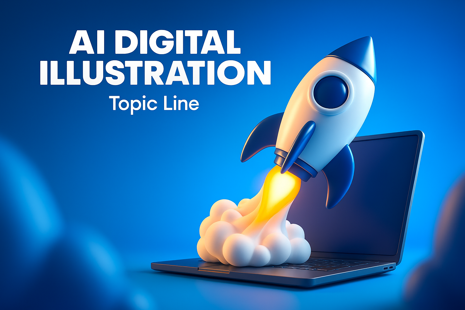 /Collection: /by davooda/Type: PNG/A vibrant 3D illustration featuring a rocket launching from a laptop screen against a smooth blue gradient background. The composition highlights a dynamic scene with engaging visual elements.