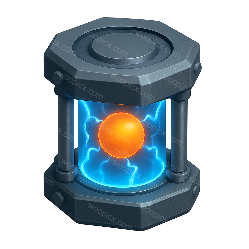 /Premium/Collection: /by davooda/Type: PNG/A three-dimensional icon representing an antimatter containment field. The design features a central glowing orange sphere encased in a metallic cylinder, emitting blue energy.