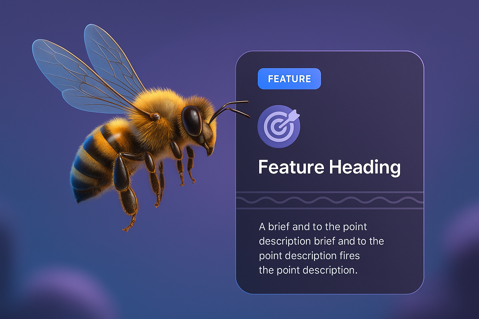 /Collection: /by davooda/Type: PNG/A detailed 3D rendering of a honey bee hovering next to an informational block. The background features a smooth gradient transitioning to a solid color, enhancing the visual appeal.