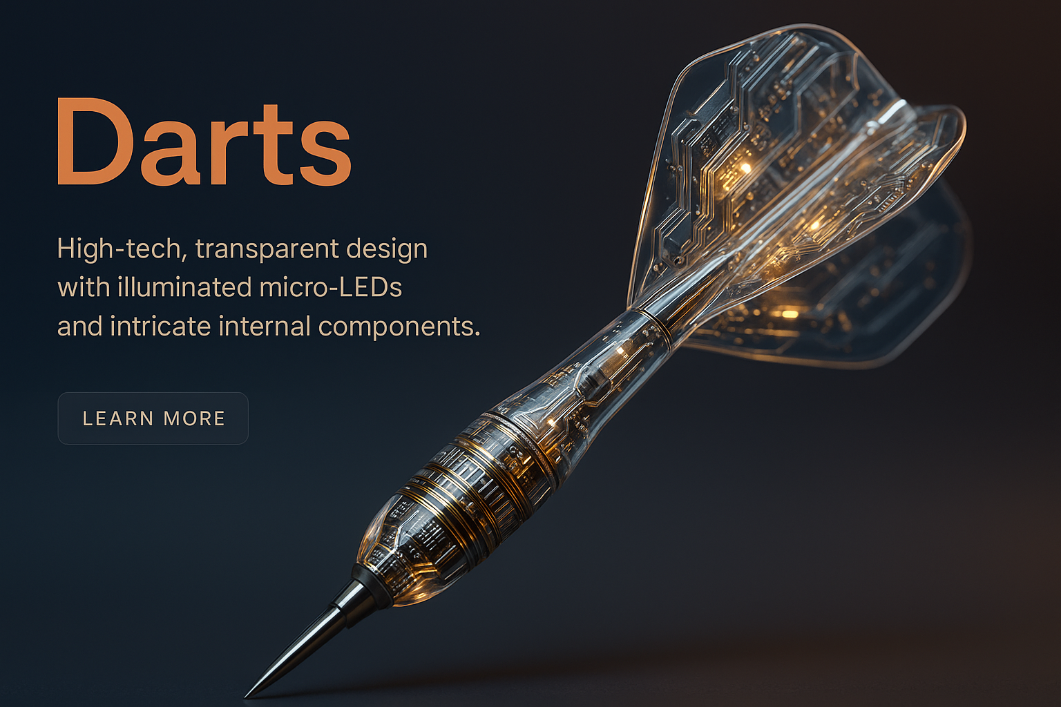 Hyperrealistic Darts with Glowing Micro-LEDs and Metallic Detailing