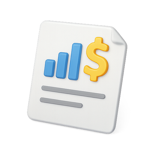 Stylized icon representing financial data, featuring a bar chart and dollar symbol. Ideal for financial apps, reports, or web graphics.