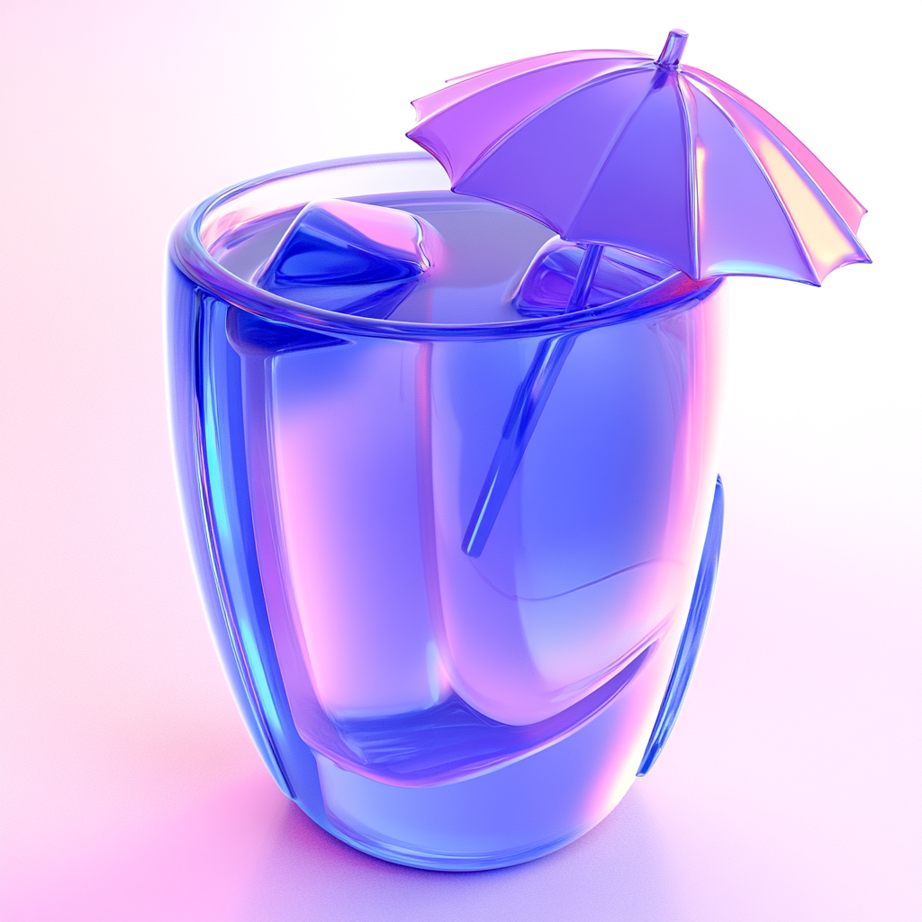 Vibrant 3D illustration of a glass with a drink, ice cubes, and a small umbrella, showcasing modern digital art style perfect for summer-themed promotions.