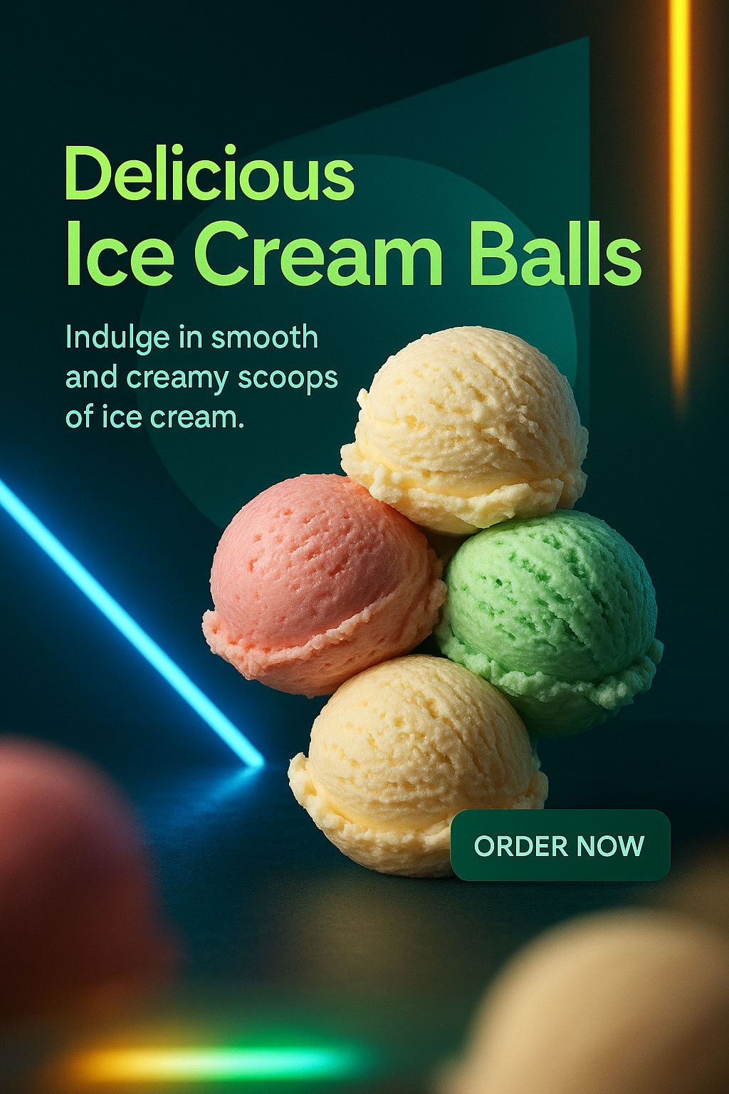 Vibrant Ice Cream Dessert Promotion with Colorful Background