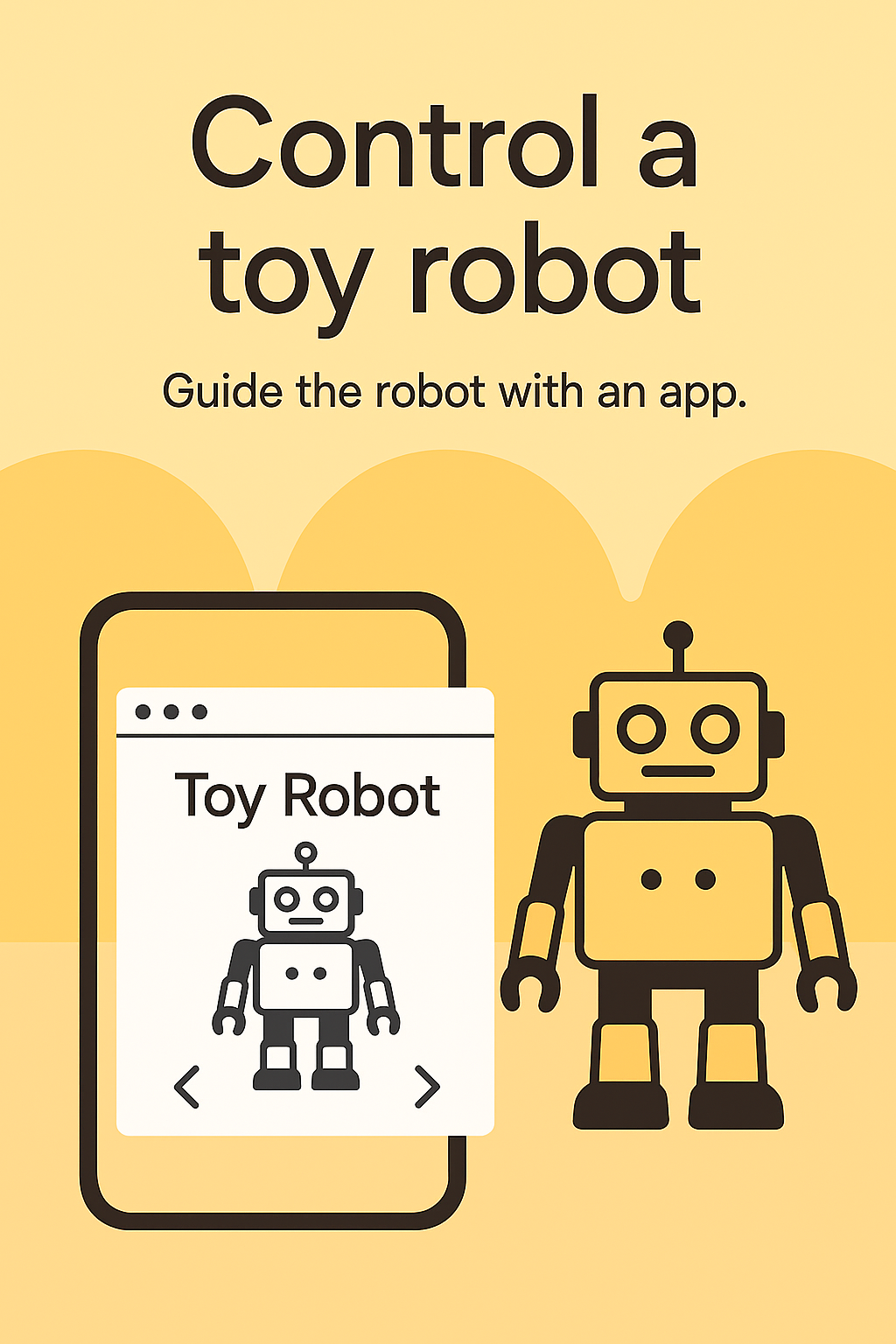 Engaging promotional image showcasing a toy robot alongside a smartphone interface, illustrating app control functionality. Ideal for children's product marketing.