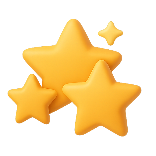 A visually appealing graphic featuring a set of three-dimensional yellow stars in varying sizes, ideal for use in digital designs, marketing materials, or children's content.
