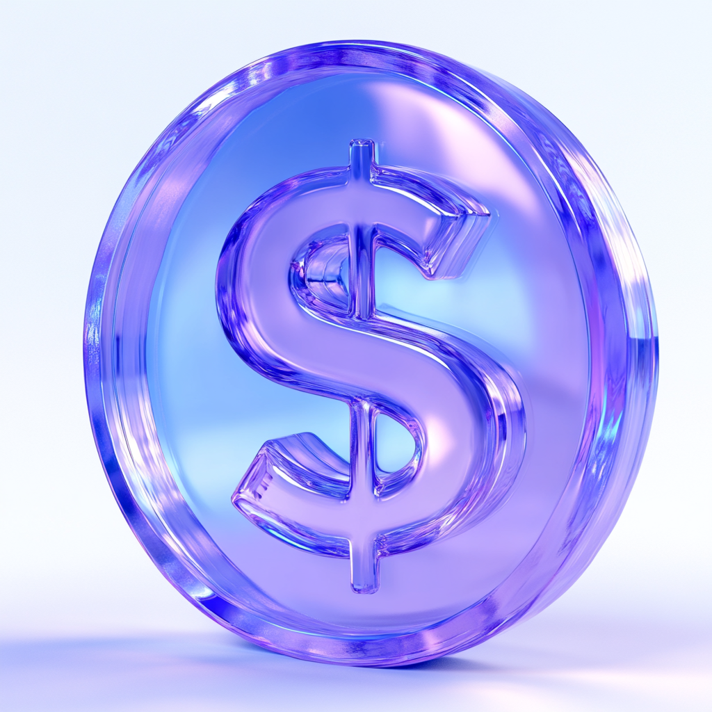 Stylized 3D Render of Transparent Dollar Coins