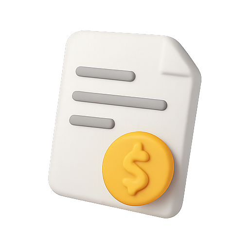 A modern 3D icon representing a financial document featuring a dollar symbol, suitable for use in fintech applications or financial content.
