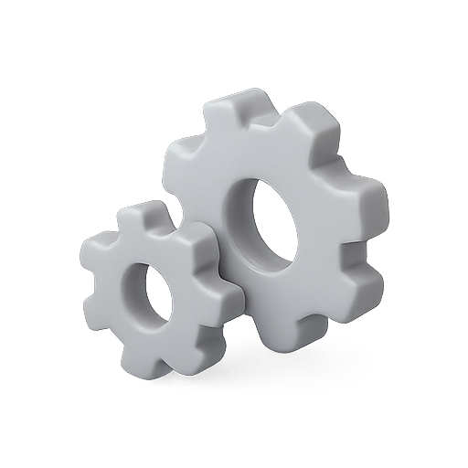 Simple and modern graphic featuring two stylized gray gear icons, suitable for technology or industrial themes. Ideal for use in digital interfaces and presentations.