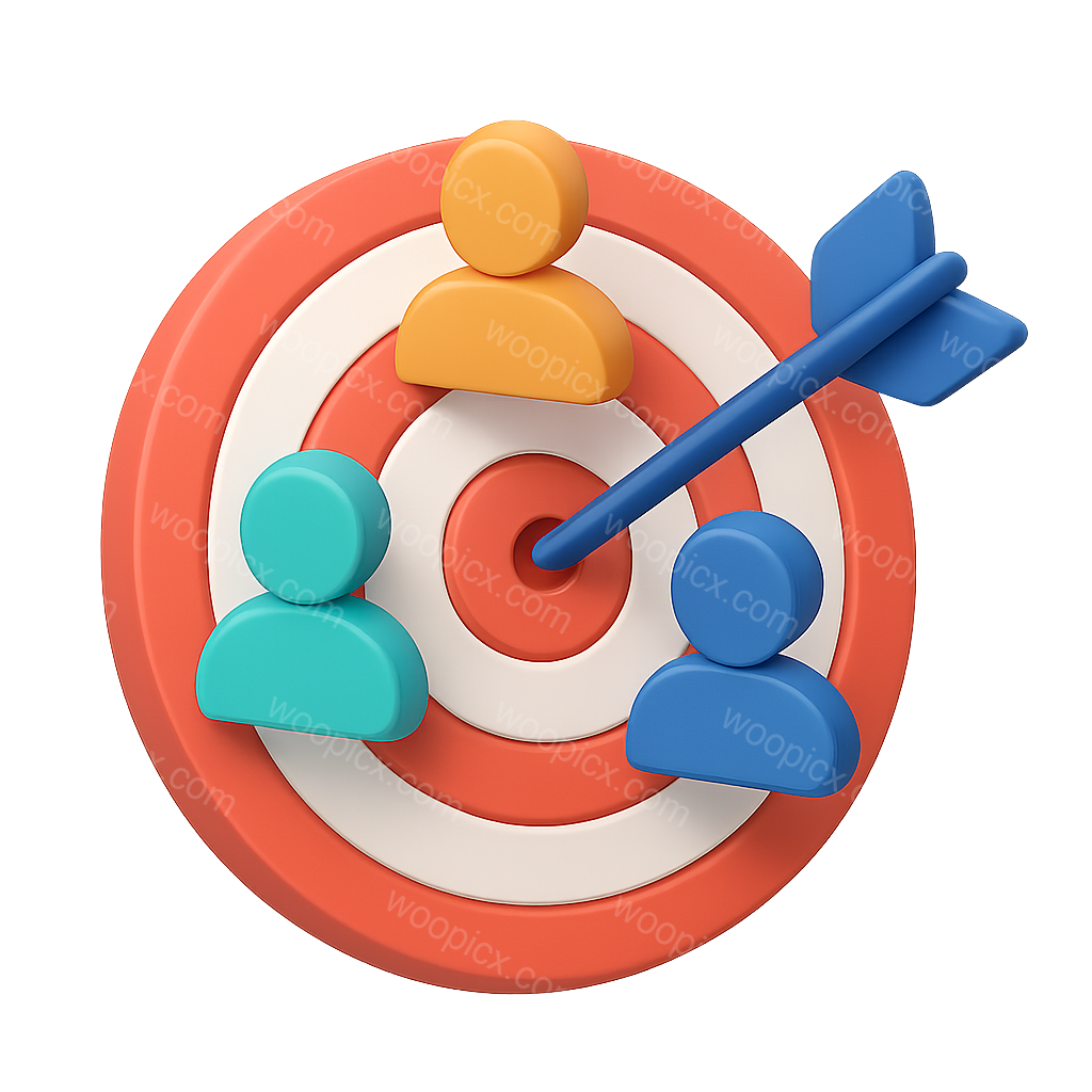 /Premium/Collection: /by davooda/Type: PNG/This image features a 3D target audience icon, showcasing colorful profiles on a bullseye with an arrow hitting the center. The design has an isometric and volumetric feel, set against a transparent background.