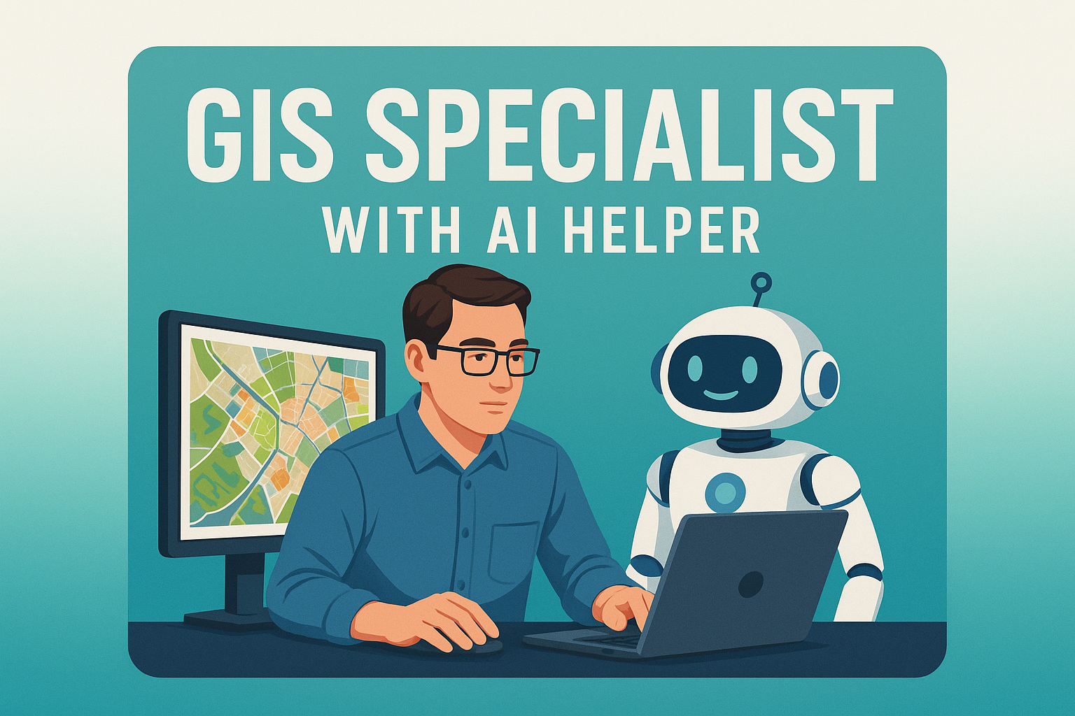 GIS Specialist Collaborating with AI Assistant in Modern Workspace