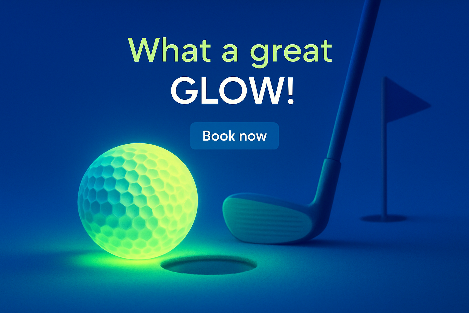 Fluorescent Golf Scene with Glowing Golf Ball and Club