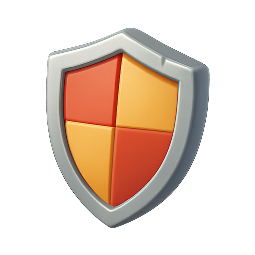 A modern, stylized shield icon featuring a segmented design in warm colors, symbolizing security and protection, ideal for tech and safety branding.