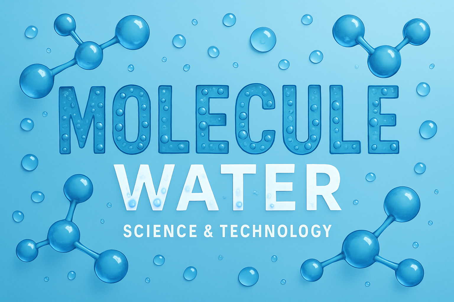 Vibrant digital graphic illustrating water molecules with a focus on science and technology themes. Ideal for educational content or science-related media.