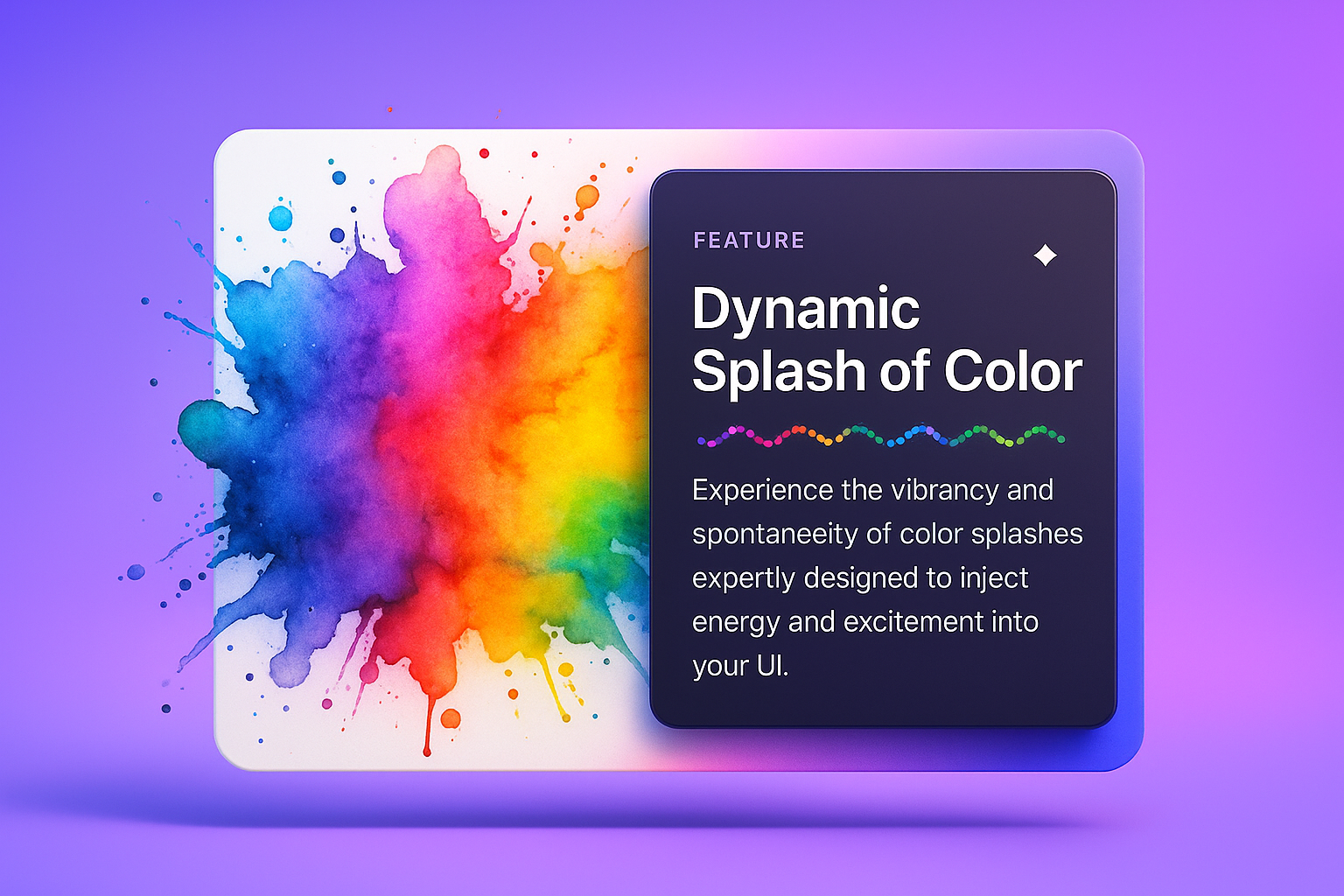 A vibrant watercolor splash in rainbow colors blends seamlessly with a feature block, showcasing dynamic design elements for UI enhancement.