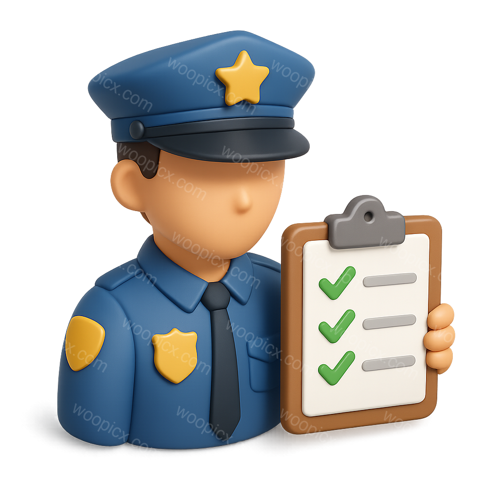 Stylized 3D Police Icon with Checklist in Isometric View