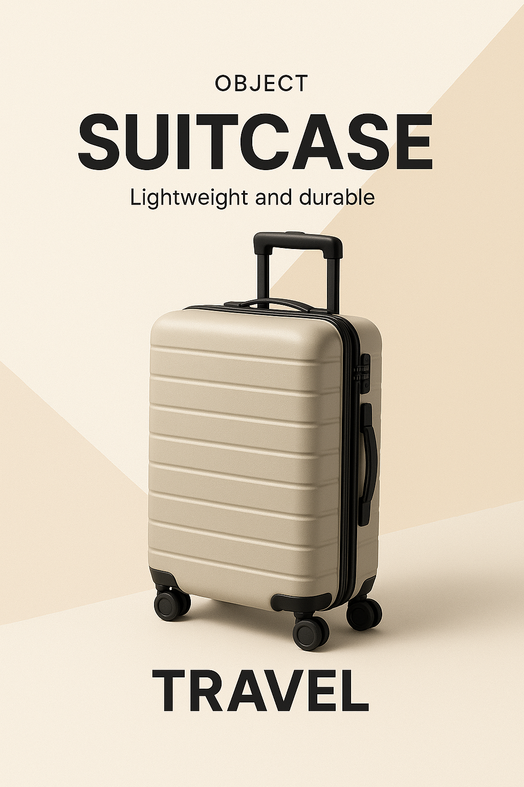/Collection: /by davooda/Type: PNG/An advertisement for a modern suitcase featuring a sleek design. The background showcases contrasting light colors, emphasizing the suitcase's features with realistic lighting and shadows.
