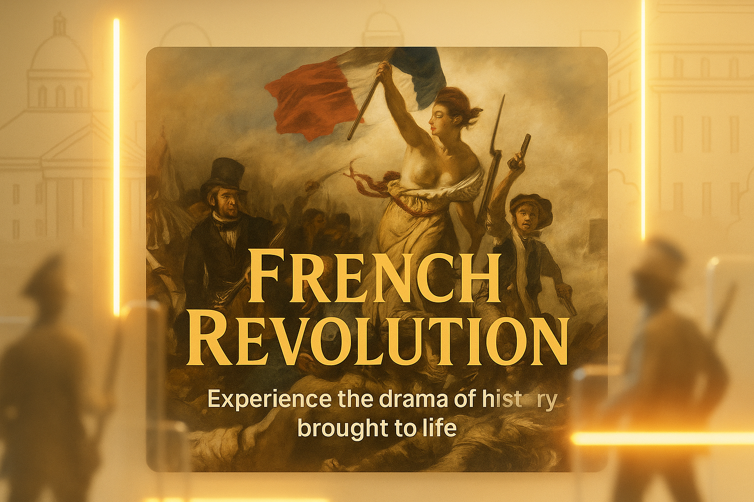 /Collection: /by davooda/Type: PNG/A visually engaging graphic depicting the French Revolution, blending historical imagery with modern design elements. Ideal for educational content or historical presentations.