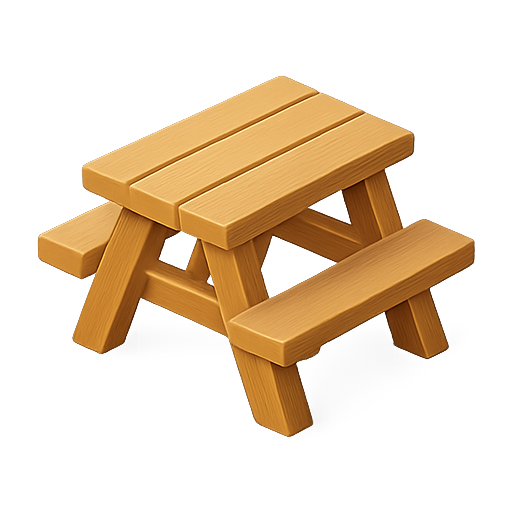 A stylized wooden picnic table icon, featuring a simple design with slatted surfaces and sturdy legs, ideal for outdoor and garden themes.
