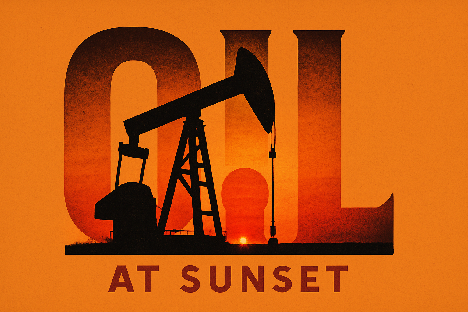 Silhouette of Oil Pump Jack at Sunset with Bold Typography