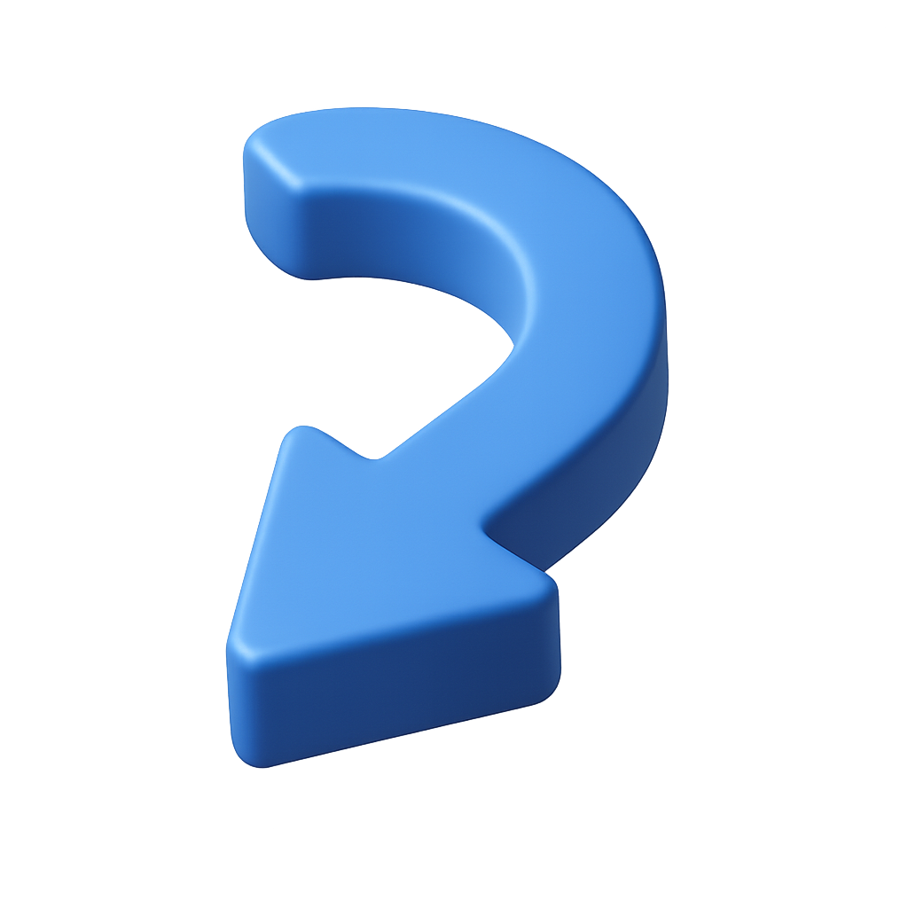 A sleek, isometric 3D icon shaped like a curved arrow, featuring a glossy blue finish and a soft glow effect, set against a neutral background.