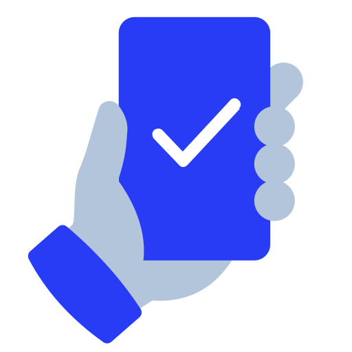 polish-blue simple icon: mobile vote, phone, checkmark, completion, approval