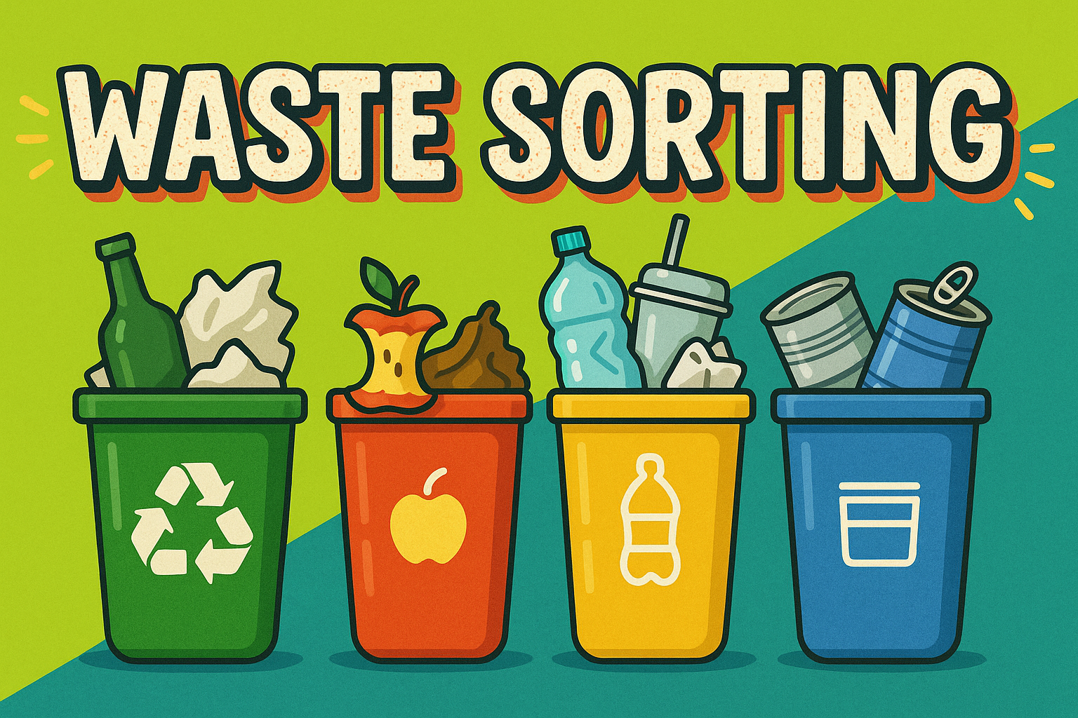 Illustrative Guide to Waste Sorting with Colorful Bins
