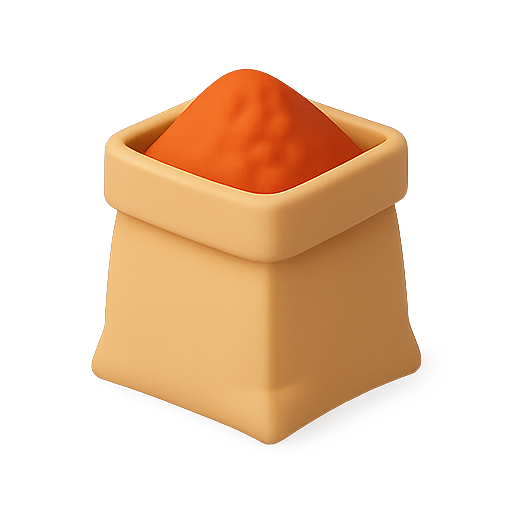 /Collection: /by davooda/Type: PNG/A 3D-rendered icon featuring a stylized container filled with orange powder. The design is minimalistic, appealing for use in food-related applications or product packaging.