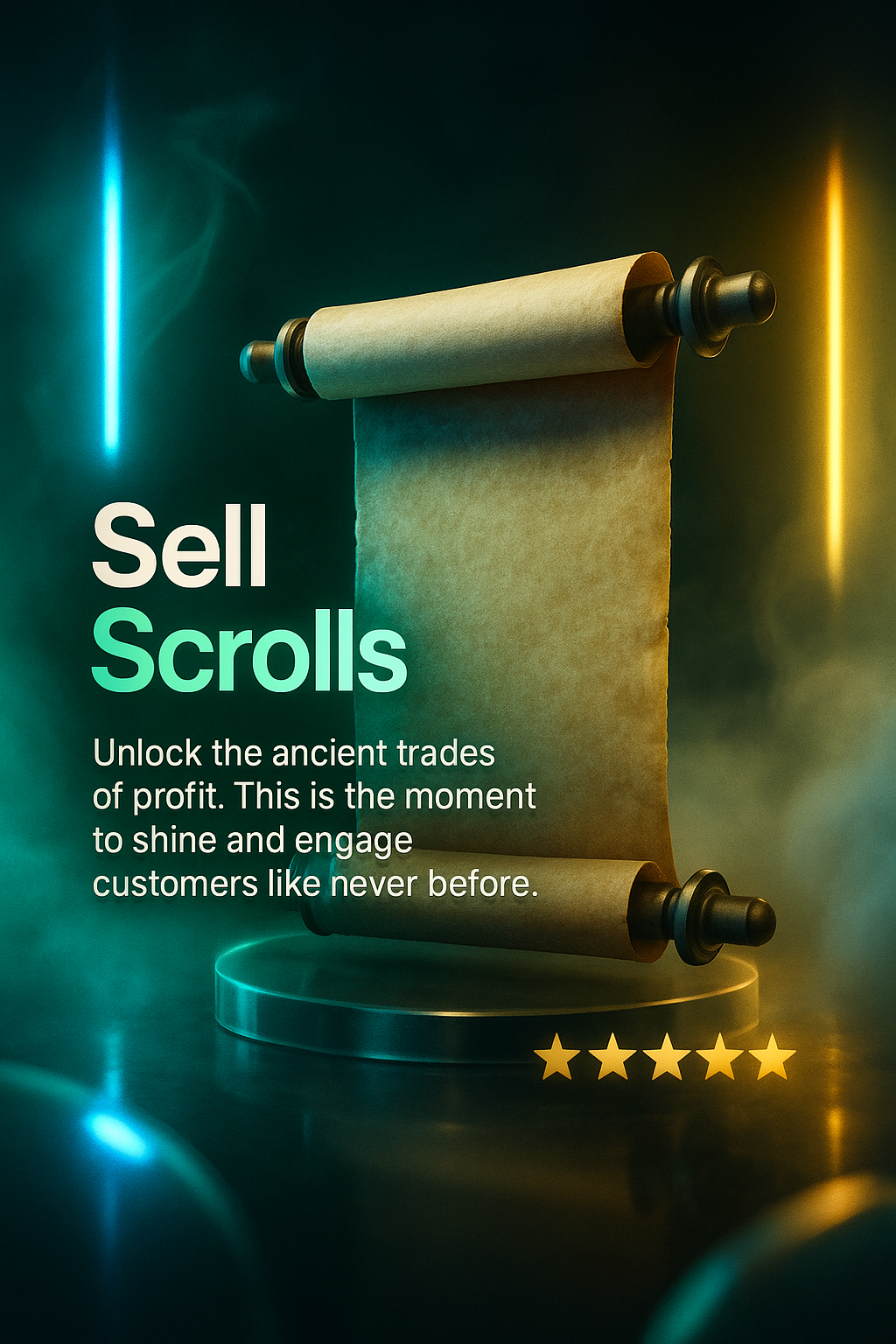 A visually striking advertising slide featuring a glowing scroll with engaging text, neon accents, and a professional layout that captivates attention.