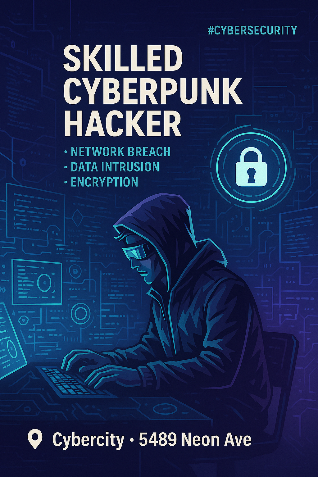 A visually striking digital illustration portraying a skilled hacker in a cyberpunk style, ideal for promoting cybersecurity awareness or events.