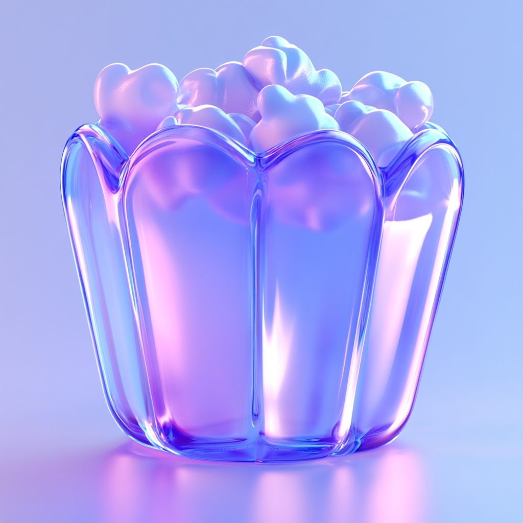 A visually striking 3D rendered image of a popcorn container featuring soft pastel colors and a glossy finish, suitable for food-related graphics or marketing materials.