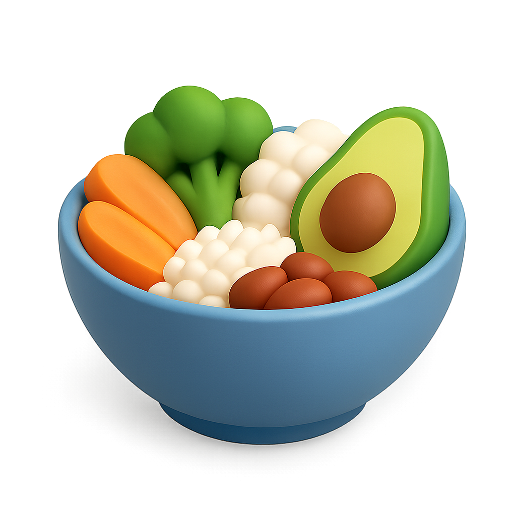 Colorful 3D Bowl Icon with Vegetables and Protein