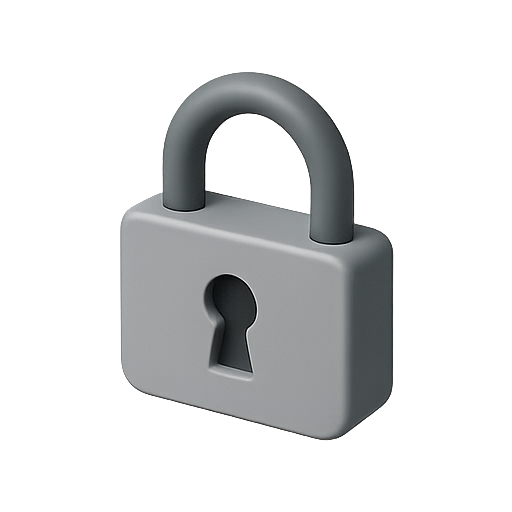 Stylized 3D padlock icon with a smooth gray finish, ideal for digital security themes. Perfect for use in applications related to safety, privacy, and access control.