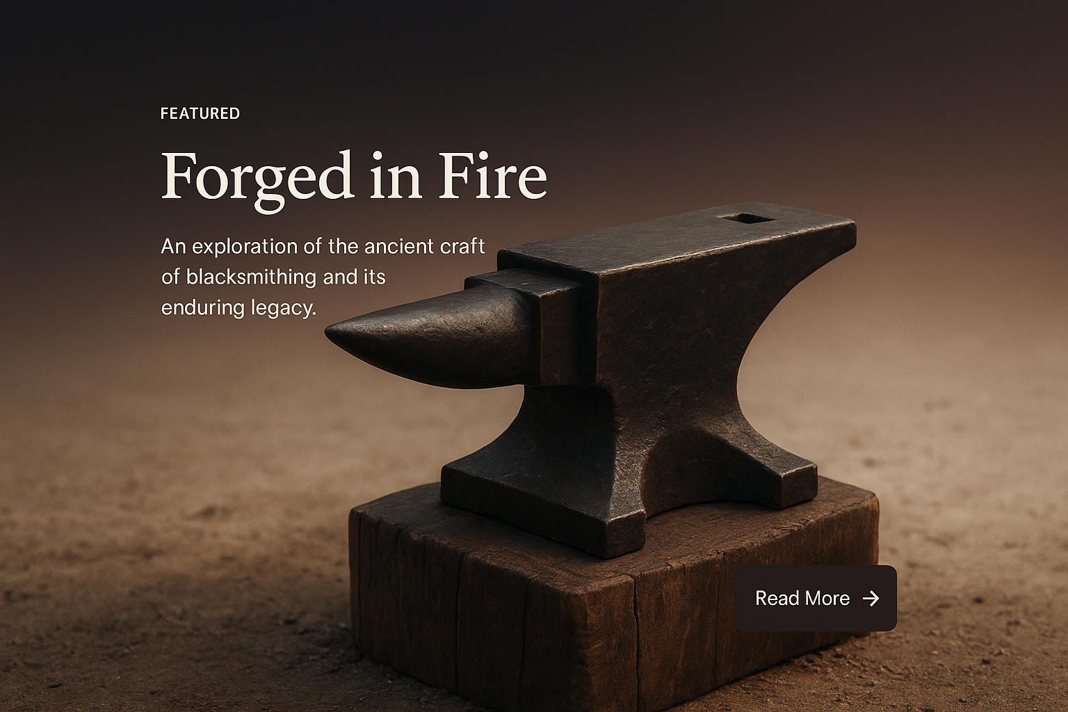 An artistic representation of an anvil on a wooden block, set against a gradient background. The image emphasizes the craft of blacksmithing, blending realism with a modern design layout.