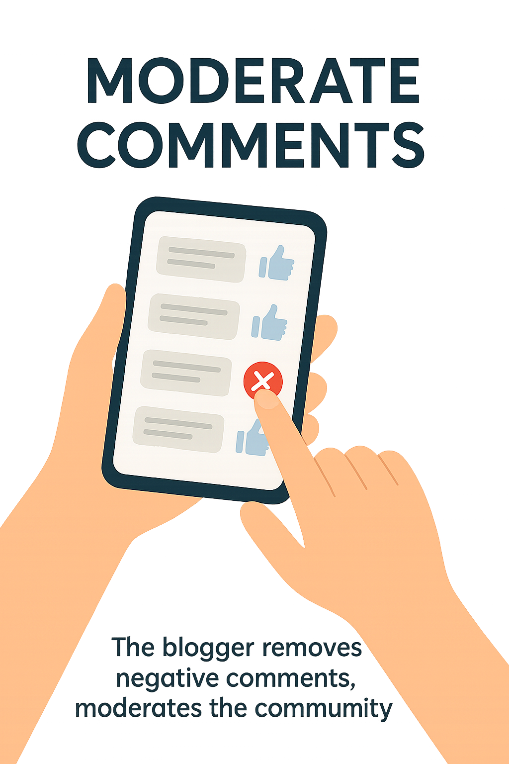/Collection: /by davooda/Type: PNG/A digital illustration showcasing the concept of moderating comments on a mobile device. The design features hands interacting with a touchscreen, symbolizing community management and engagement.