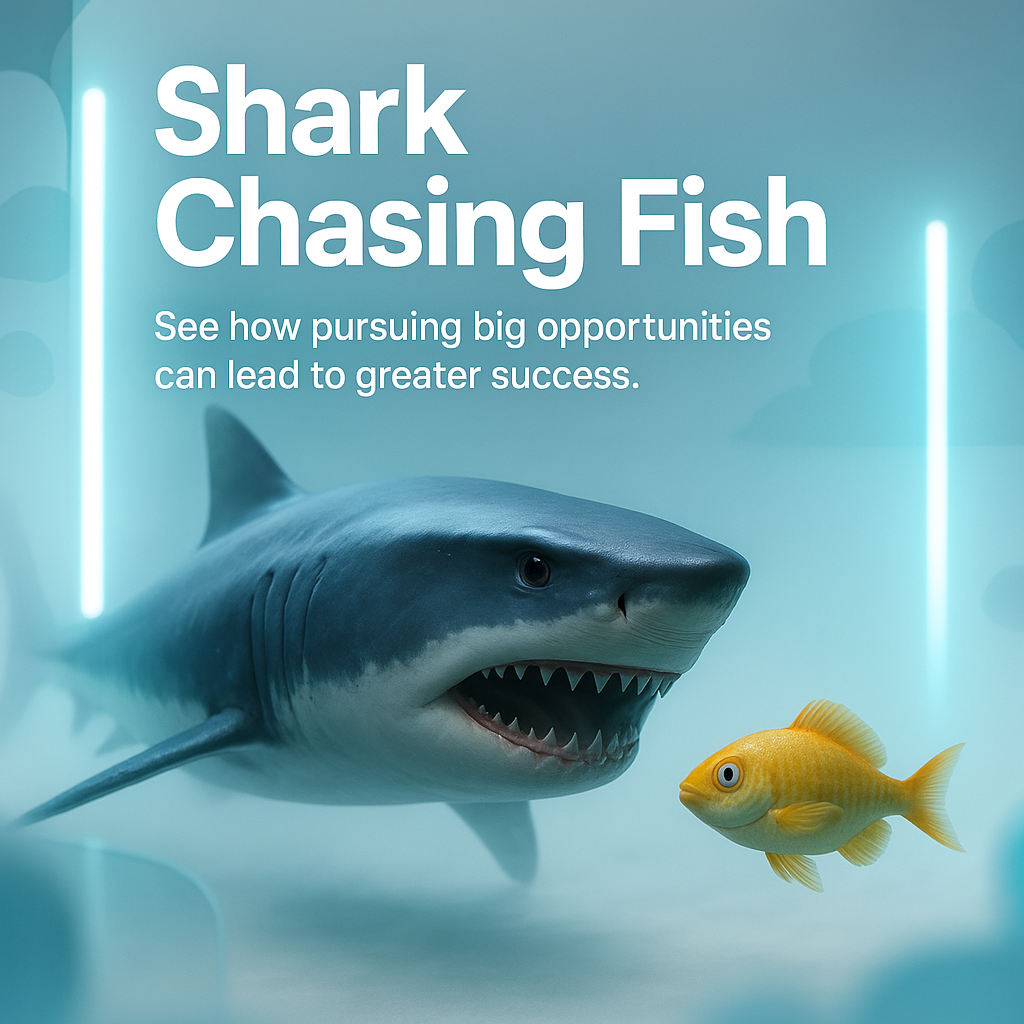 /Collection: /by davooda/Type: PNG/A realistic depiction of a shark pursuing a fish, showcasing themes of ambition and opportunity. The scene features glowing neon lights, enhancing the dramatic effect.