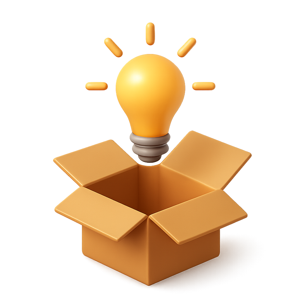 3D Icon of Light Bulb Above Open Box