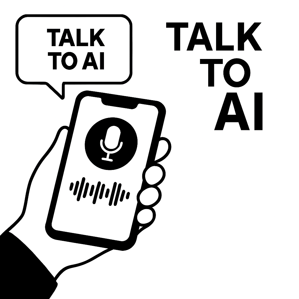 /Collection: /by Sergey Leonov/Type: PNG/A clean, minimalist graphic depicting a hand holding a smartphone displaying a voice assistant interface. Ideal for tech-related marketing or social media posts.