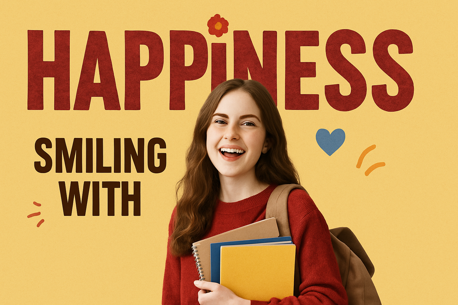 Bright and uplifting image featuring a smiling student holding books, designed to evoke feelings of happiness. Ideal for educational or motivational use.