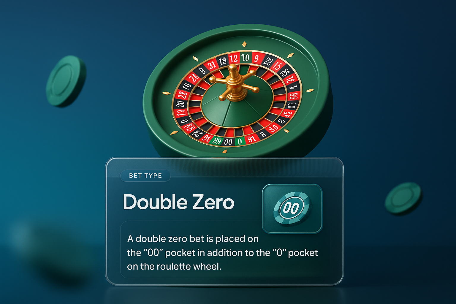 /Collection: /by davooda/Type: PNG/A dynamic 3D illustration showcasing a roulette wheel with a focus on the double zero bet. The design includes a layered composition with a gradient background and a visually engaging text block.