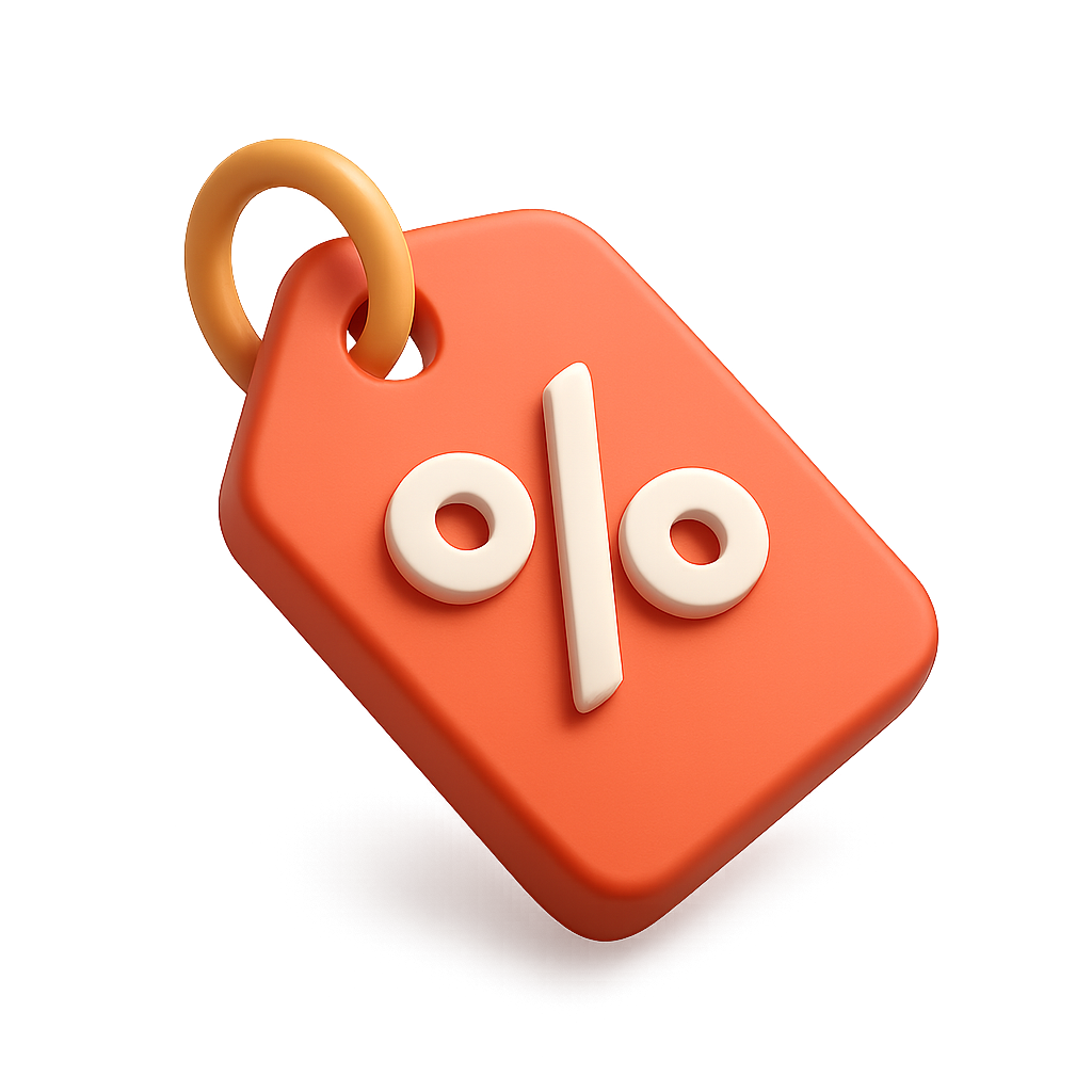 Stylish 3D Discount Tag Icon with Percentage Symbol